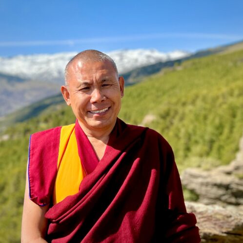 Venerable Geshe Yeshe Rinchen, monje tibetano, nació en Tibet en 1986. Tuvo que trabajar en el campo para ayudar a su familia y entró en el monasterio local a la edad de 16 años, donde fue ordenado. Ahí estudio durante 5 años antes de partir a Nepal y a la India. Obtuvo el título de Geshe Lharampa en 2010 y terminó sus estudios tántricos en 2012. Estuvo viviendo en India, Sera, y Nepal hasta que Lama Zopa Rinpoche y Geshe Jamphel le pidieron venirse a enseñar en Nalanda, Francia.